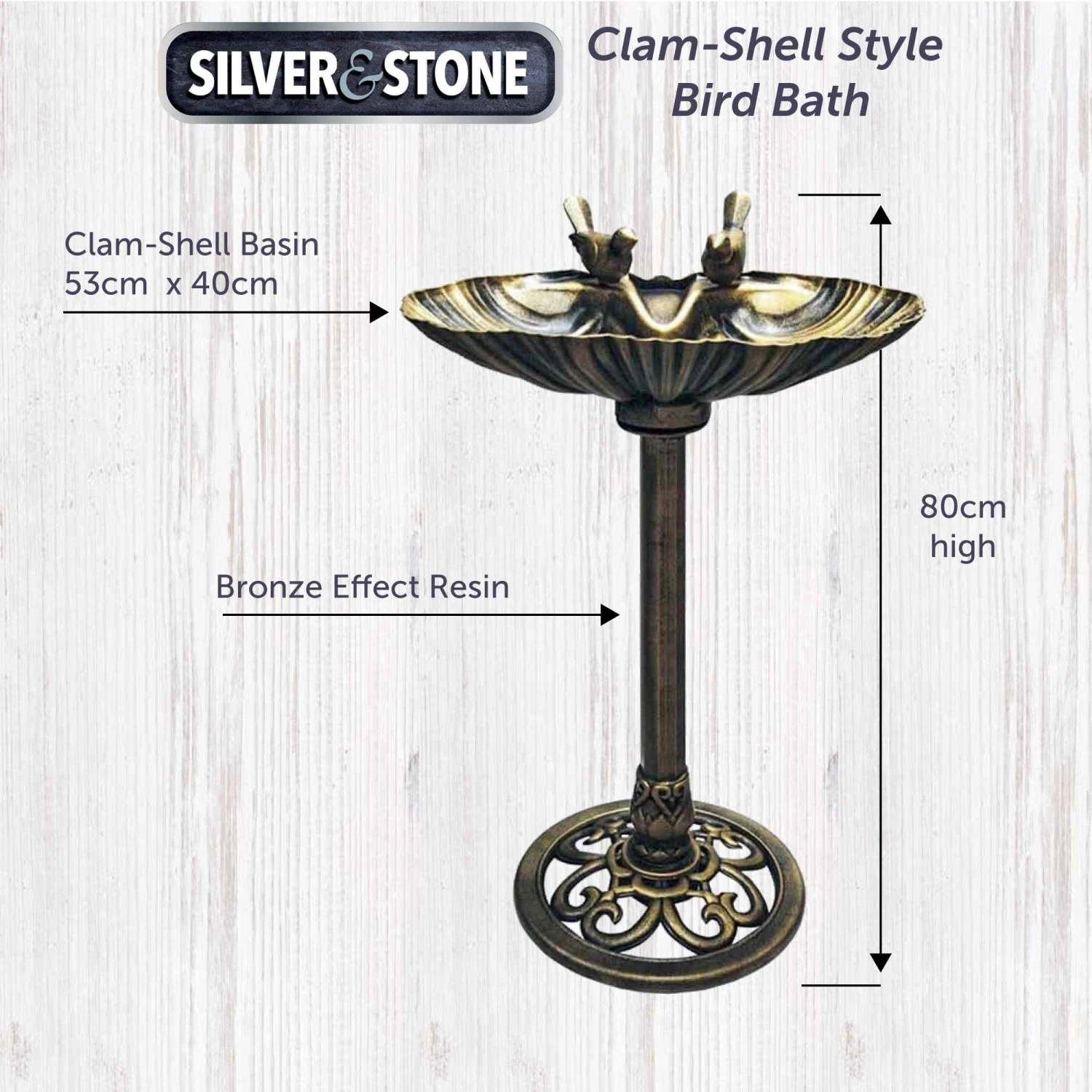 • Designed for maximum aesthetic impact and durability, this bird bath has been made from a smooth and sleek bronze effect resin. This quality waterproof material looks classy and stylish while also being able to withstand the elements all year round without becoming damaged.