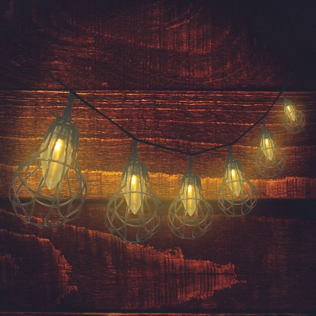 Each caged garden light utilises ultra-bright LED bulbs. The rustic ultra-bright bulbed lights provide added power and depth of colour within the lights for a bold and clear light source, improving the overall aesthetic appeal of the outdoor garden string lights. Each LED bulb is encased in a bronzed cage adding plenty of character to the lighting source.