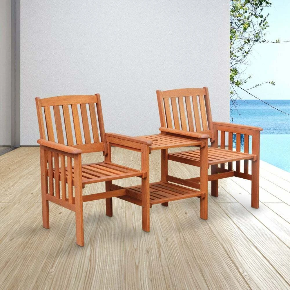 • The garden love seats with table bring comfort and style to all outdoor settings. Designed for outdoor seating for 2 people, the hardwood love seat allows couples to unwind and enjoy the summer sun in the comfort of their own garden, patio, decking or balcony.